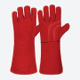 Entire Red Dyed Cow Split Leather | 16″ Welding Glove | Wing Thumb | Welted Seam | Kevlar Stitched | Wide Strap Reinforced Palm | Upper hand Fleece & Lower Hand Flame-Retardant Cotton Lining