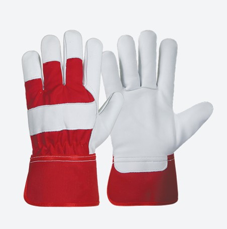 | Upper hand Material: | A heavy red color Cotton Twill with Leather fingertips and knuckle strap for extra protection |