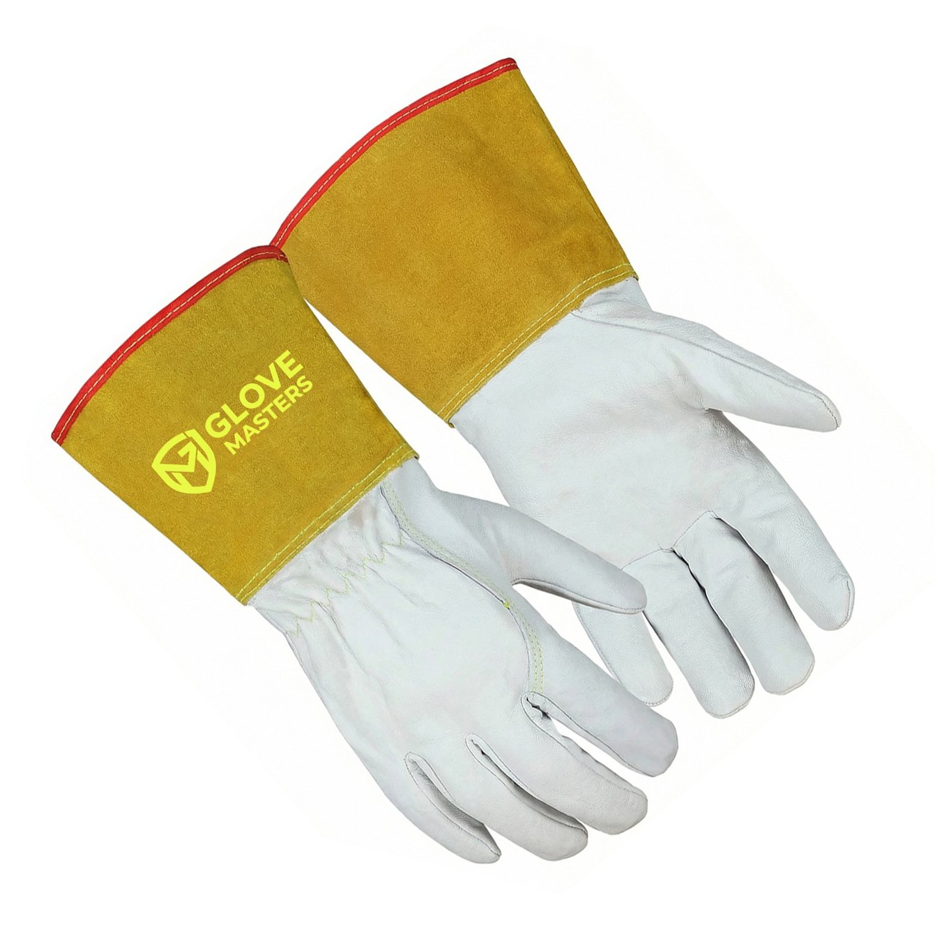 • Extended Golden Cow Split Leather Cuff with Red Hem – Protects the wrist and forearm while offering enhanced visibility and a durable, finished cuff edge.